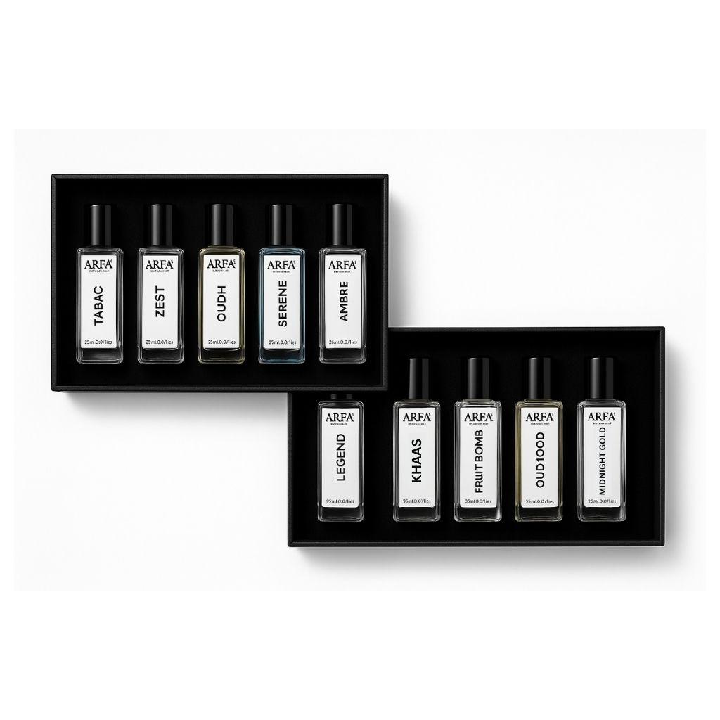 This collection includes a curated blend of classics and modern favorites – from the rich intensity of Oudh and Oud 1000 and Khaas, the bold warmth of Tabac and Ambre, to the refreshing tones of Zest and Serene, and the signature allure of Legend, Fruit Bomb, and Midnight Gold.